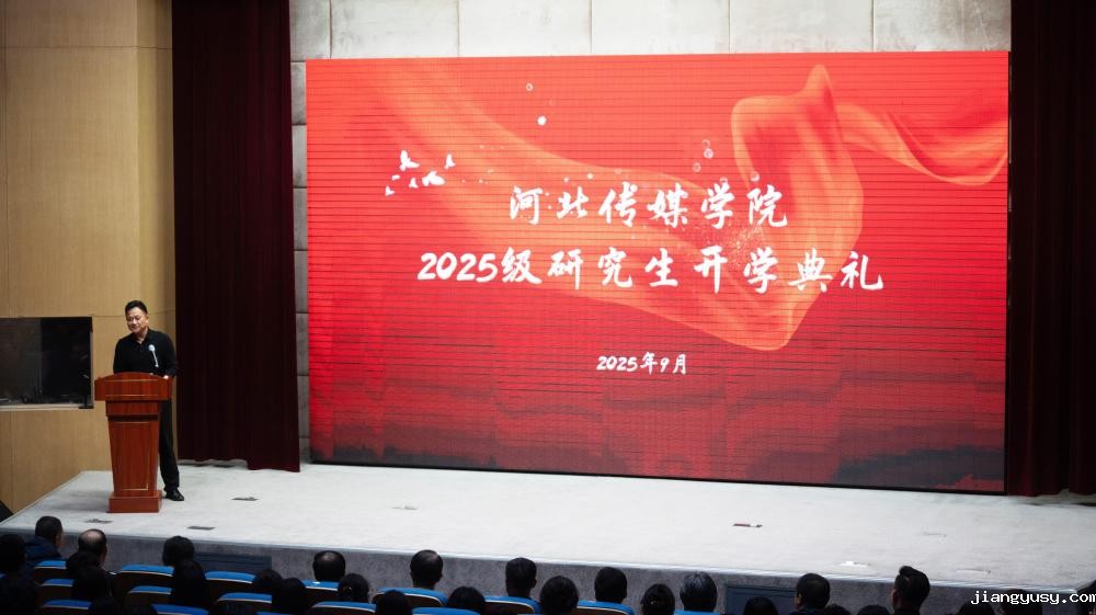 在庄严的国歌声中,开学典礼正式拉开帷幕。党委书记赵红星代表学校向全体新生致以热烈欢迎和诚挚祝贺。他强调,同学们要将个人学术追求与国家发展、民族复兴紧密结合,用专业能力记录时代、传播主流价值、服务人民需求,成为先进文化的践行者和社会风尚的引领者。赵书记希望同学们坚定理想信念,厚植家国情怀;恪守学术规范,追求真知卓见;聚焦传媒前沿,勇于创新创造;坚持全面发展,锻炼高尚品格。